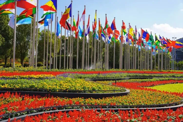 进博会的花卉优先选用适应本地气候、耐热耐寒、低养护成本的花卉,重点考虑秋季观赏植物,避免高成本反季节花卉。注重花期衔接与组合的丰富性,运用草花、宿根花卉和彩叶植物的组合模式,既确保进博会展期内始终有主景可赏,同时通过点、线、面结合的图案,增强空间美感。