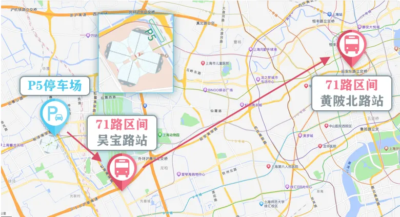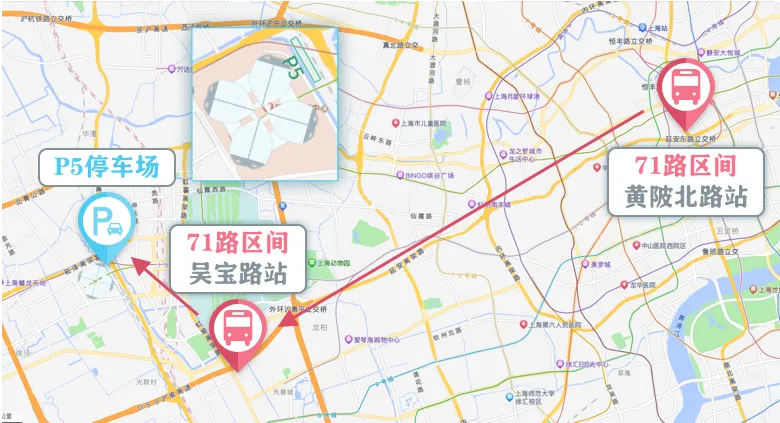 展会期间,71路区间线延伸运营,直达进博会P5停车场。