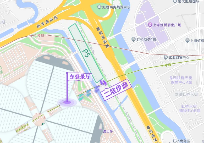 P5停车场~虹桥机场T2航站楼、虹桥火车站(出发层)