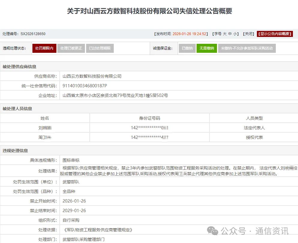 四是“关于对山西云方数智科技股份有限公司失信处理公告概要”。