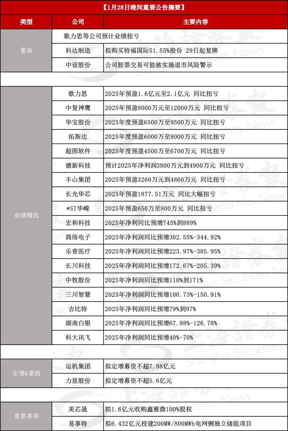(备注:数据截至28日21:30,后续公告内容请下载上证报APP在快讯栏目查看;或在微信首页菜单“上证财讯”中查看。)
