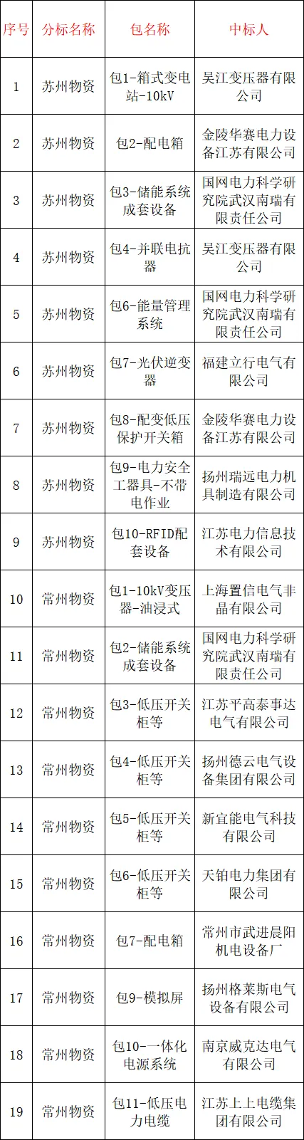 国网江苏电力2025年原集体企业第十一次物资公开招标采购-1项目的中标候选人公示活动已经结束。现将中标人名单公告如下: