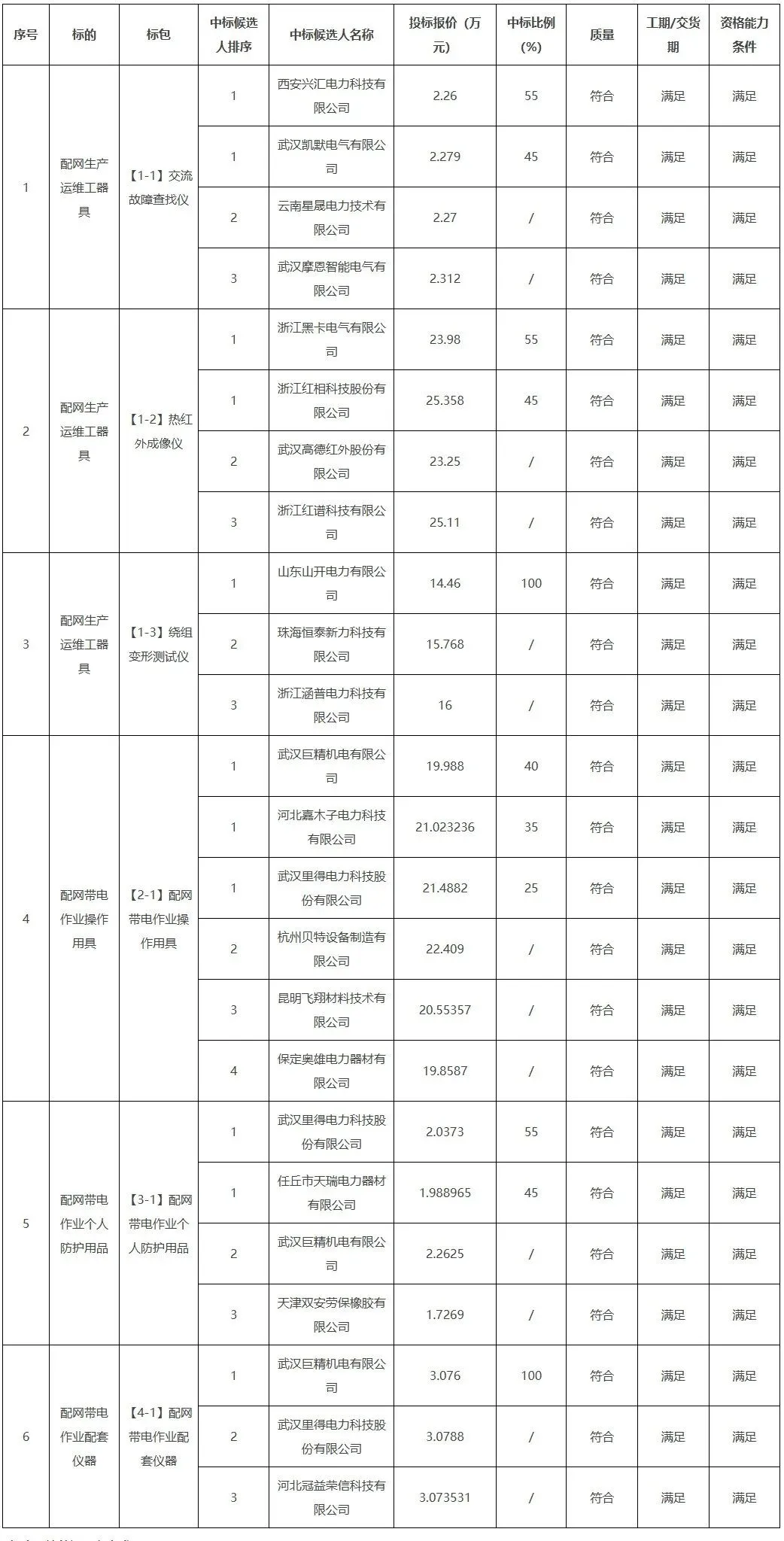 贵州电网有限责任公司物资类2026年(配网生产运维工器县、配网带电作业操作用县等)框架招标(招标项目编号:CG0600022002218029),经评标委员会评审,现将中标候选人公示如下: