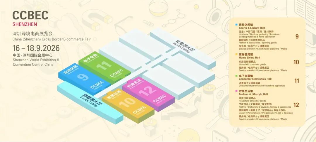 精彩尚未远去,新程已然启航。2026年CCBEC深圳跨境电商展已正式确定展期,将于2026年9月16日至18日在深圳国际会展中心举办。2026CCBEC展馆覆盖9至12号馆,聚焦运动休闲、家居日用、电子电器、时尚生活等四大热门品类,致力于打造全球跨境电商平台生态圈。