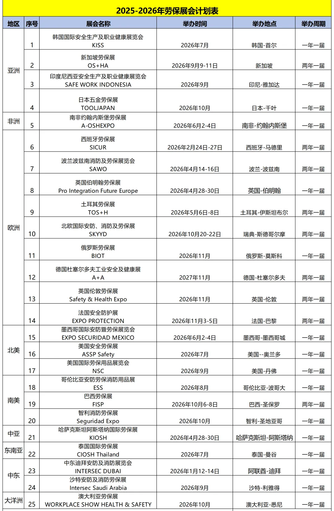 2025-2026年劳保展会计划表