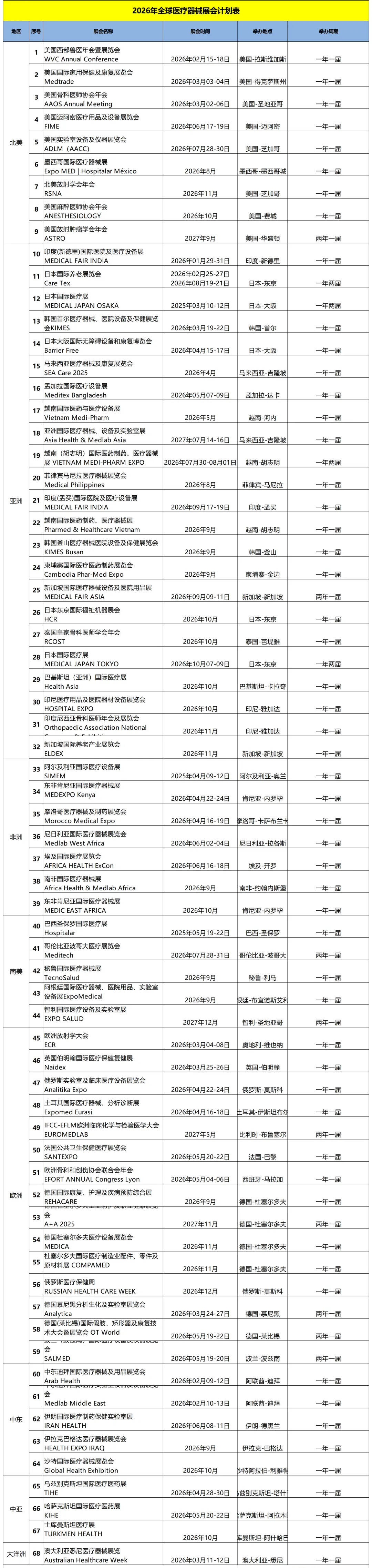 2026全球医疗器械展会计划表