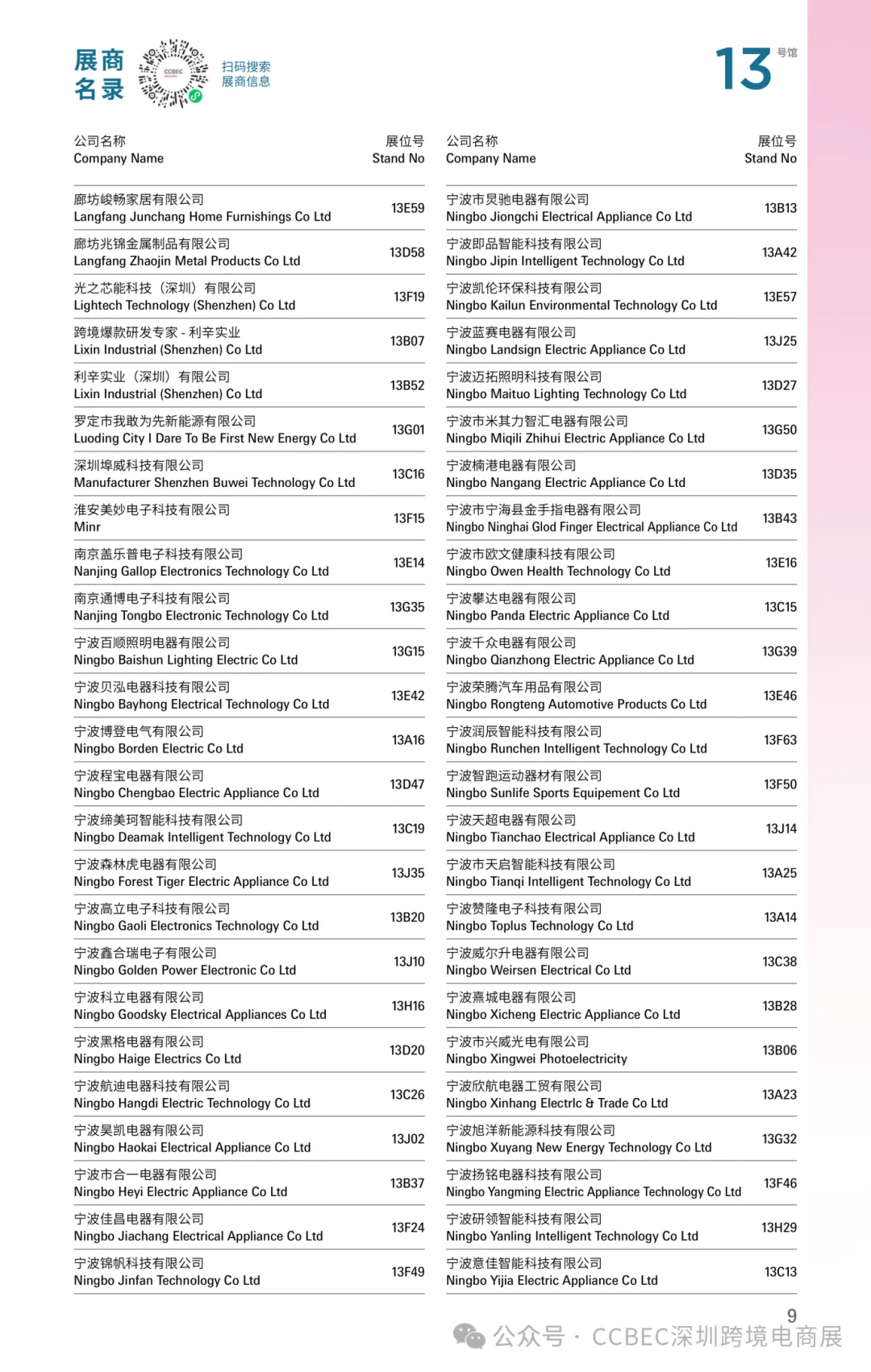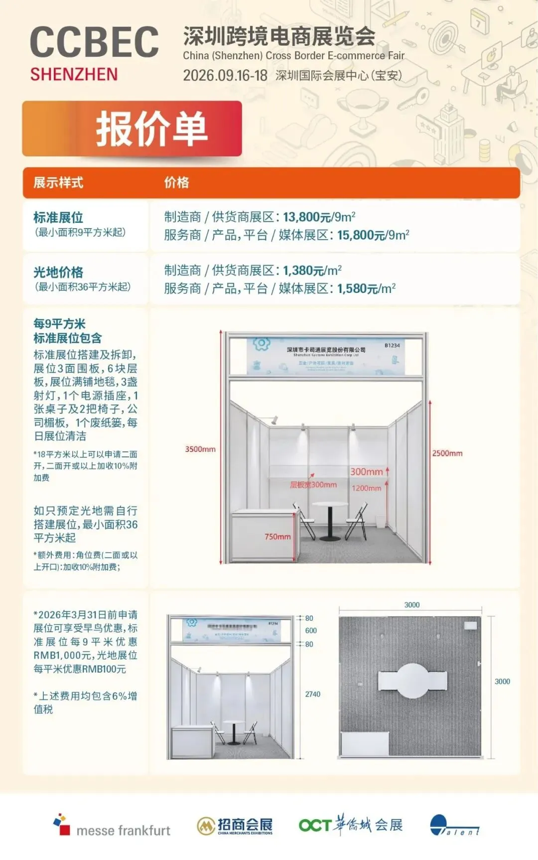 标准展位(9㎡):13,800元/个