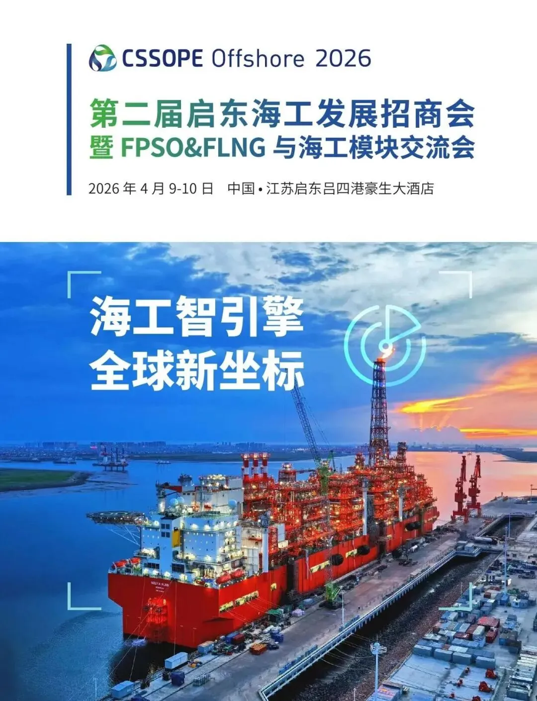 2026年4月9-10日,由东方尚能咨询机构主办的第二届启东海工发展招商会暨FPSO&FLNG与海工模块交流会,将在江苏启东吕四港豪生大酒店重磅启幕。本次活动以“海工智引擎 全球新坐标”为主题,汇聚全球海工产业链领袖、技术专家与投资机构,聚焦吕四港作为“一带一路”与“长三角一体化”战略交汇点的产业势能,打造海工装备领域的高端对话与务实合作平台。