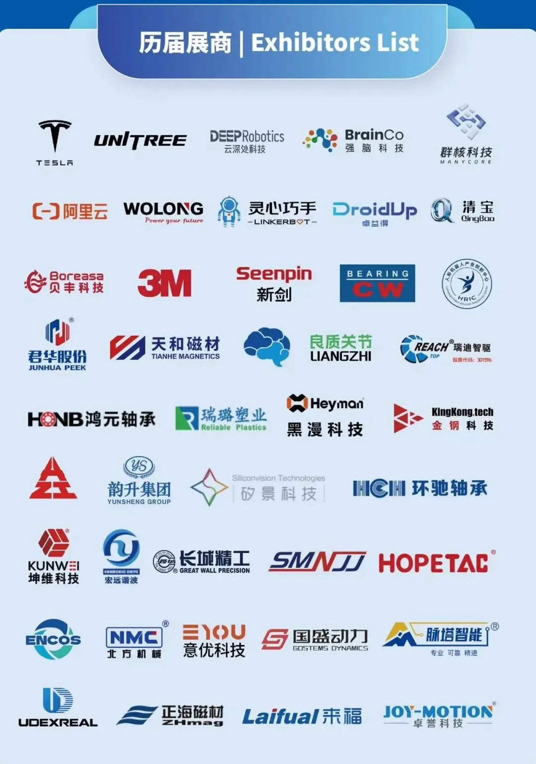 特斯拉、宇树、智元、云深处、阿童木、新剑、禾川、瑞迪智驱等行业标杆齐聚,现场将集中展示人形机器人整机成品、精密减速器、仿生关节、传感器等核心部件,以及具身智能、脑机接口、仿生驱动等尖端技术成果,一站式呈现从核心部件到整机落地的全产业链解决方案,让您直观洞察产业演进全貌!