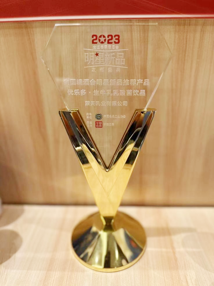 蒙天乳业凭借生牛乳乳酸菌产品”品类升级、原料升级、口味升级、健康升级“等亮点创新特色,经过专业组委会评选,荣获全国经销商大会 品牌新品牌大奖。
