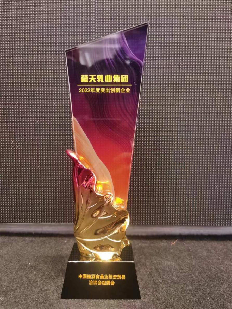 4月13日,中国糖酒食品业投资贸易洽谈会组委会主 办,湖南卫视及芒果TV联合承办的 颁奖晚会上,蒙天乳业再度获得两项大奖: