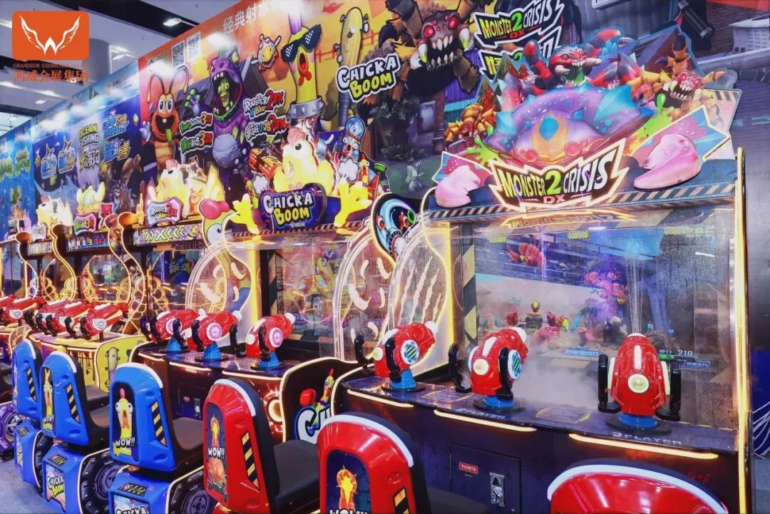 A区一楼+二楼(1-8馆)—— “数字娱乐与室内体验”核心区:集中展示室内乐园、淘气堡、电子游艺、礼品机、VR/AR、数字体育、互动多媒体、全息投影、乐园管理系统及IP衍生品等,聚焦家庭娱乐与数字科技融合创新。