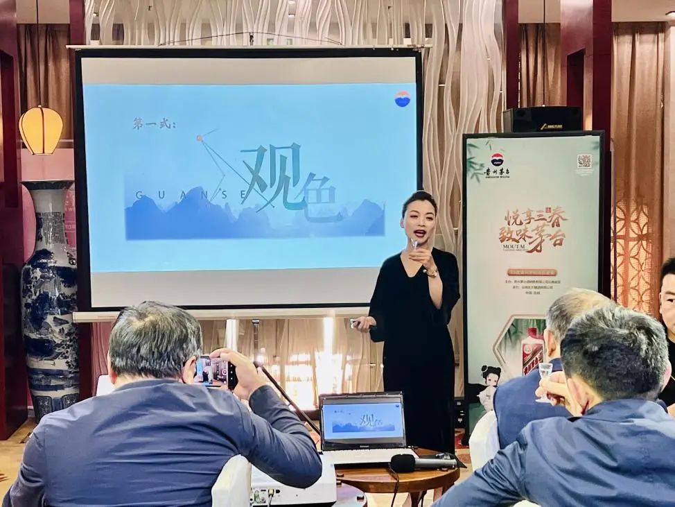 云南联谊会宣讲员周庆玲老师为现场嘉宾介绍了茅台酒工艺知识和品鉴方法,通过观其色、闻其香、尝其味、综合看风格,让“茅粉”透过品饮体验,学习、了解到茅台酒正确的“打开方式”,不仅知茅台,更懂茅台,进而爱上茅台。