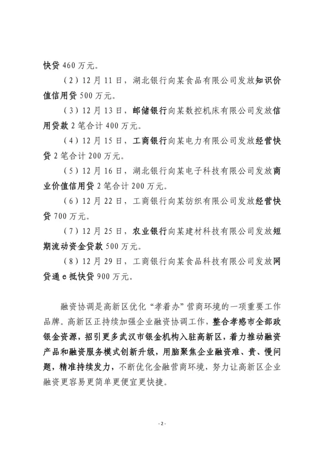 现将高新区2025年12月企业融资需求协调办结情况通报如下。