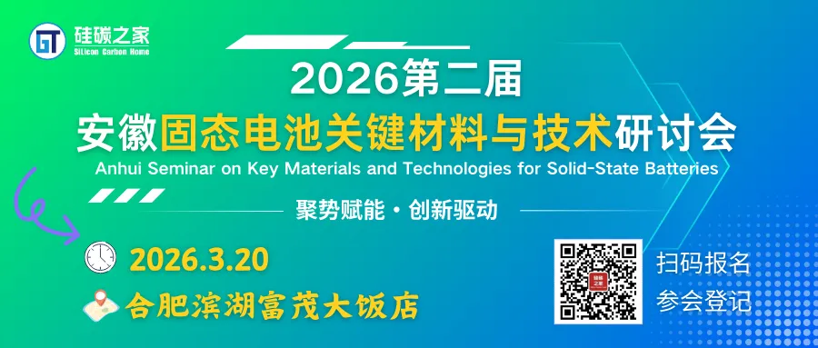由硅碳之家主办的“2026安徽第二届固态电池关键材料与技术研讨会”将于3月20日在安徽合肥滨湖富茂大饭店召开,大会以“聚势赋能 创新驱动”为主题,会议重点聚焦固态电解质、正负极材料、界面工程、智能制造及产业化进展等热点议题,分享固态电池技术路线选择与最新产业化动态,探讨固态电池的未来发展趋势及挑战,为学术界和产业界实质性对接交流提供平台和合作契机,开展产、学、研合作,助推固态电池产业商业化发展提速。