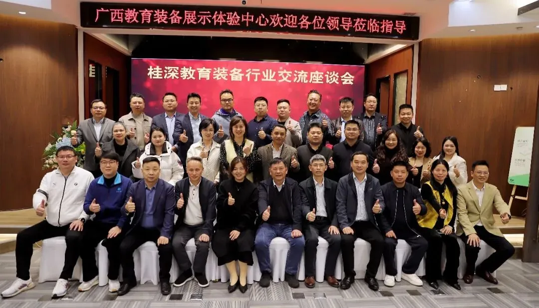 1月20日下午,桂深教育装备行业交流座谈会在广西教育装备展示体验中心召开。协会代会长贵尚明,常务副会长黄均利,人工智能教育装备分会会长丁健,学前教育装备分会会长陈小亮,副会长陆国亮、郭立玉、张辉印、梁承高,理事徐元英等协会代表参加。崇左市电化教育站站长许华方、协会创会会长陈铁华受邀莅临会议指导。