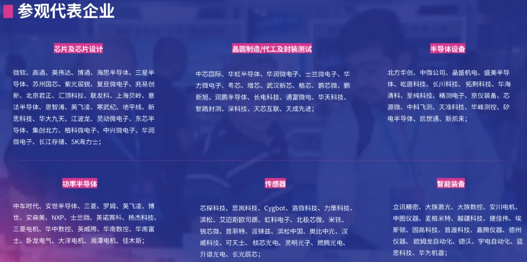 微软、高通、英伟达、海思、中芯国际、比亚迪、华为等全球龙头企业确认参观,50%+ 观众来自半导体制造及服务领域,29.78% 来自半导体设备领域,精准对接上下游采购、研发及决策层,高效促成商贸合作。