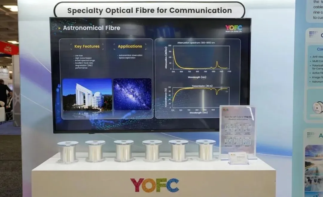 在光纤通信领域,长飞公司重点展示了器件保偏光纤、有源光纤及天文光纤等特种产品系列。