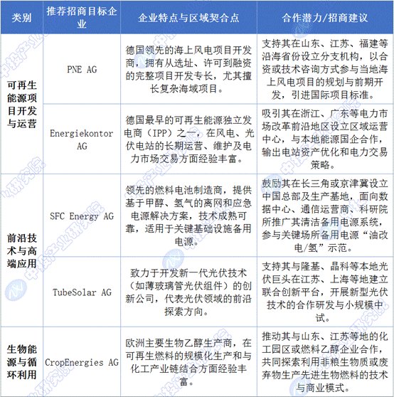 图表:东部地区重点招引德国绿色能源企业建议清单