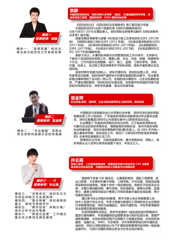 中招联合(招标采购云学院)结合当下央国企招采条线面临的共性问题、痛点难点,特邀行业内具备央国企采购与供应链顶层设计、制度编制、组织策划、招采执行等全流程经验的专家开展系列线上培训课程。详细安排如下: