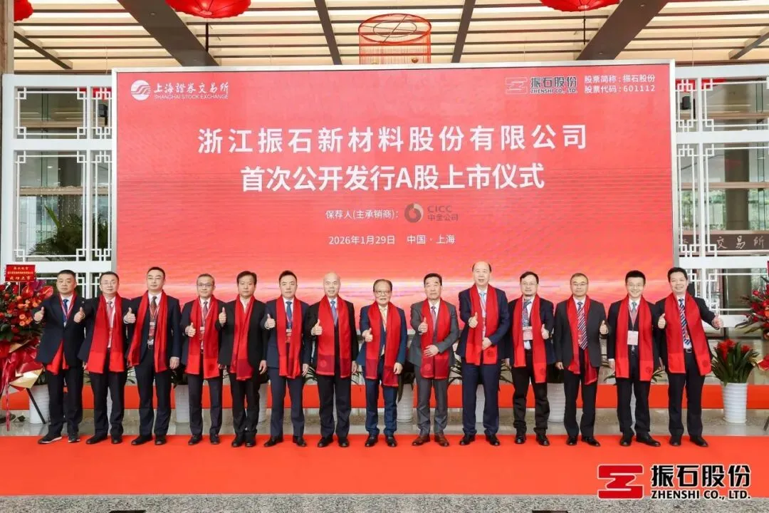 今天上午9时30分许,随着上海证券交易所上市大厅内一声响亮而庄严的锣鸣,来自嘉兴桐乡的浙江振石新材料股份有限公司正式登陆沪市主板,股票代码为“601112”,成为沪深主板2026年浙江首家新增A股上市公司,也标志着桐乡再添一家上市企业。