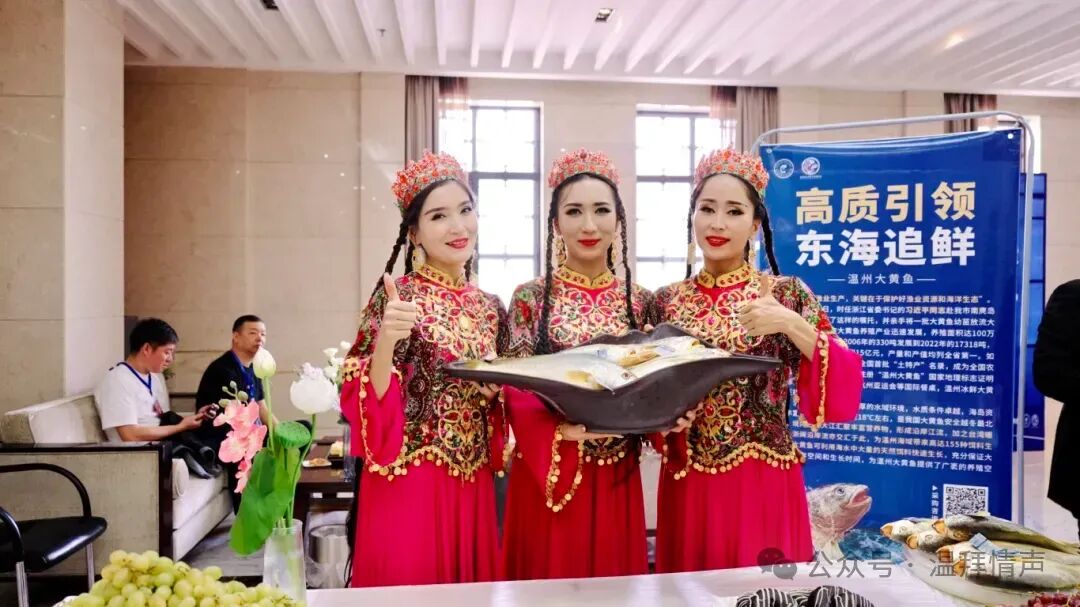 现场从千里之外远道而来的温州大黄鱼展示区,深受现场来宾好评,纷纷驻足了解。
