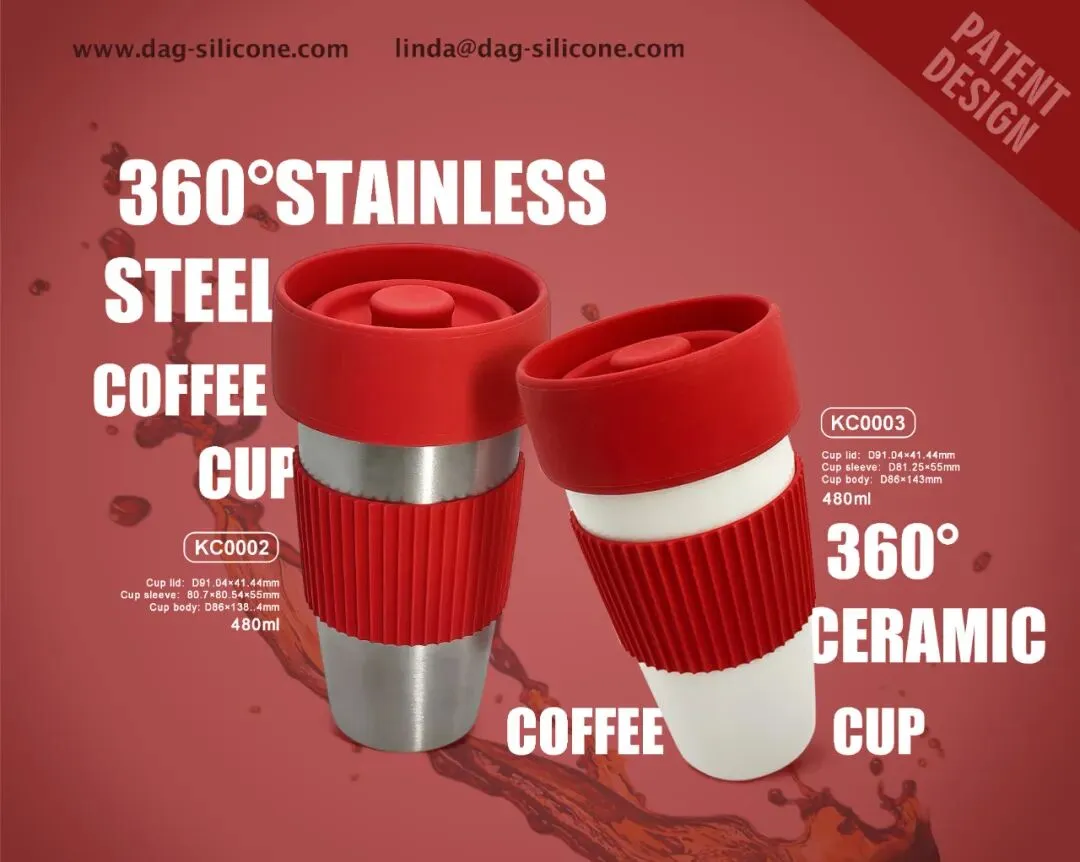 1.360°无嘴防漏咖啡杯,搭载专利一体式硅胶杯盖,8个均匀出水孔实现任意角度轻啜即饮,防漏设计更安心,可选不锈钢或陶瓷杯身,搭配防滑防烫硅胶杯套;