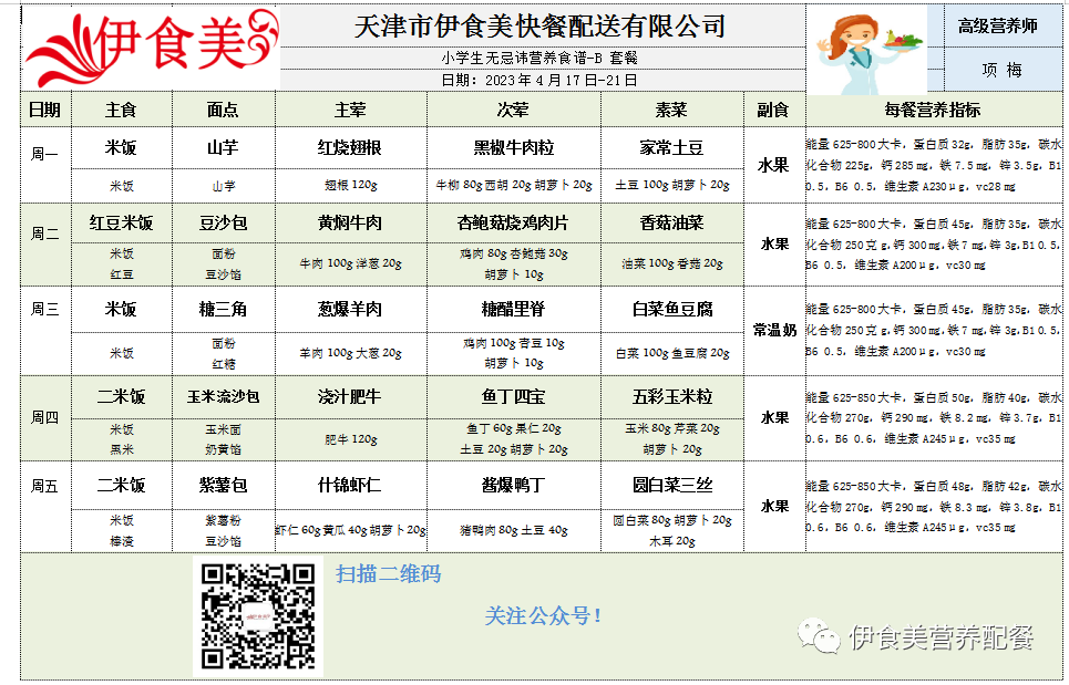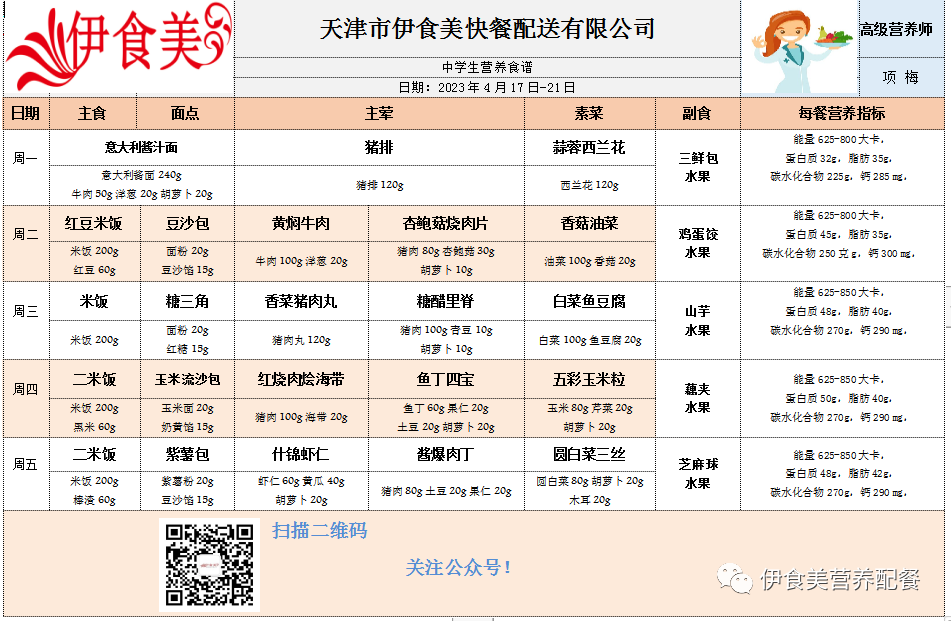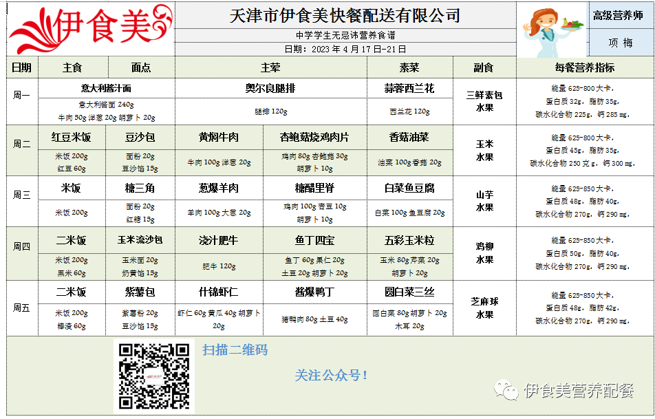 根据天气变化、市场原材料供应情况,菜品会有微调,以下菜谱展示仅供参考,具体用餐情况请以每天实际送餐为准,感谢理解!