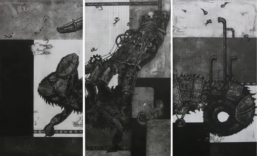 公元某时(三联组画 ) 铜版腐刻 陆莎莎