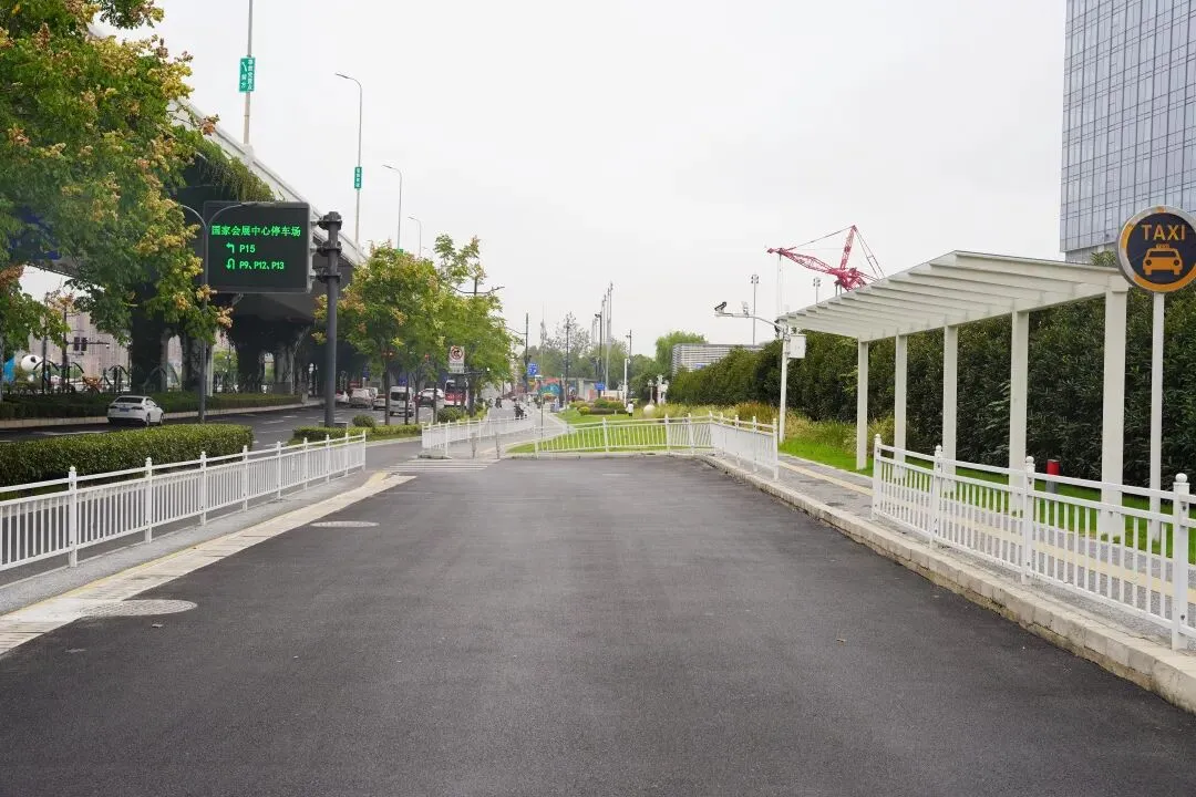 此次专项整治聚焦人行步道增设、安全护栏增加、围墙粉刷与美化等铺装围墙方面和绿化空间整理、停车场入口优化等绿化标识方面。“小到步道砖松动、栏杆锈蚀,大到绿化带断带、盲道中断,均纳入我们的整治清单。”进博会市容市貌整治项目项目经理夏东民向记者介绍,项目于9月1日开工,经过一个多月的修缮已经全部完工,相比较之前可以说是焕然一新。记者在现场看到,崧泽大道诸光路公交站区的改造升级尤为引人注目。通过施工团队精准发力,雨棚全面翻新、护栏扶正加固、塌陷路面重铺沥青,候车更安全舒适,车辆通行也平稳顺畅。