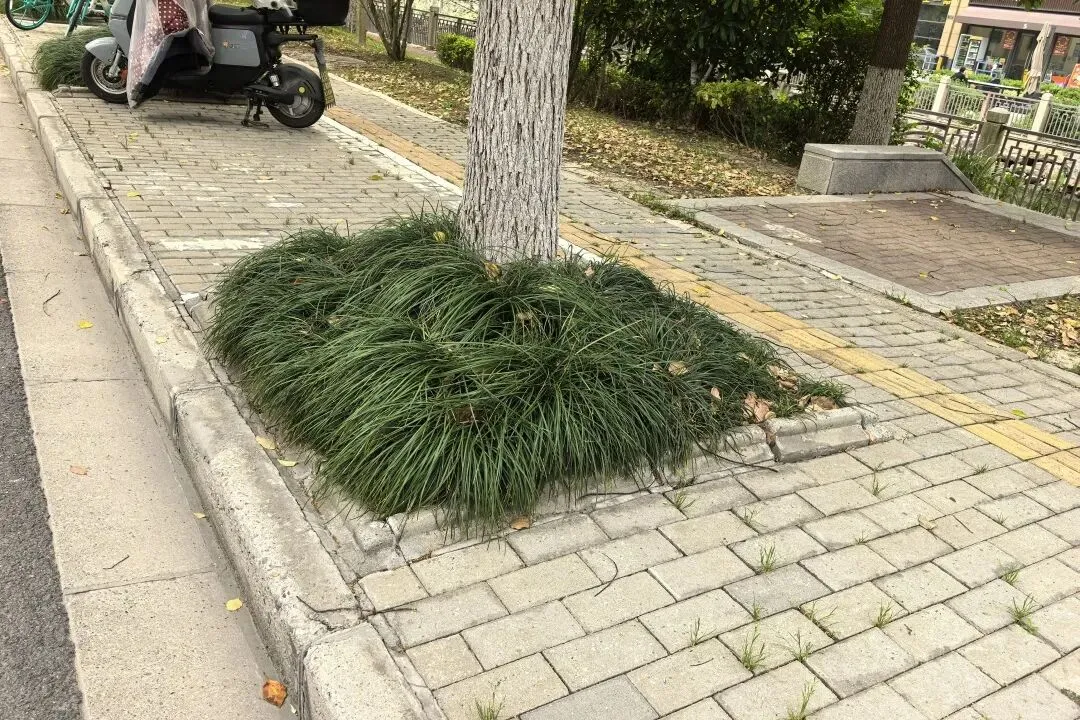 此外,位于蟠中路、盈港东路、会恒路的180处树池也彻底告别“脏乱差” 。记者在蟠中路改造现场了解到,此前树池内杂草疯长,原本种植的麦冬枝叶早已突破树池边界,蔓延至人行道,不仅影响整洁,还阻碍行人脚步;更棘手的是,部分树木根系逐年壮大,直接顶破了周边的人行道地砖,导致路面隆起开裂,雨天时泥水顺着缝隙溢出,行人路过时常被溅湿裤脚。“这些树池之前疏于维护,杂草、淤泥堆积,不仅影响美观,还存在安全隐患。”夏东民说,“我们这次彻底清理了树池内的杂草、枯枝,修剪规整溢出的麦冬,再对破损的树池壁进行修补、对隆起的人行道地砖重新铺设,最后统一用鹅软石满铺树池,既抑制杂草,又提升排水,再也不用担心雨天溅水问题了。”