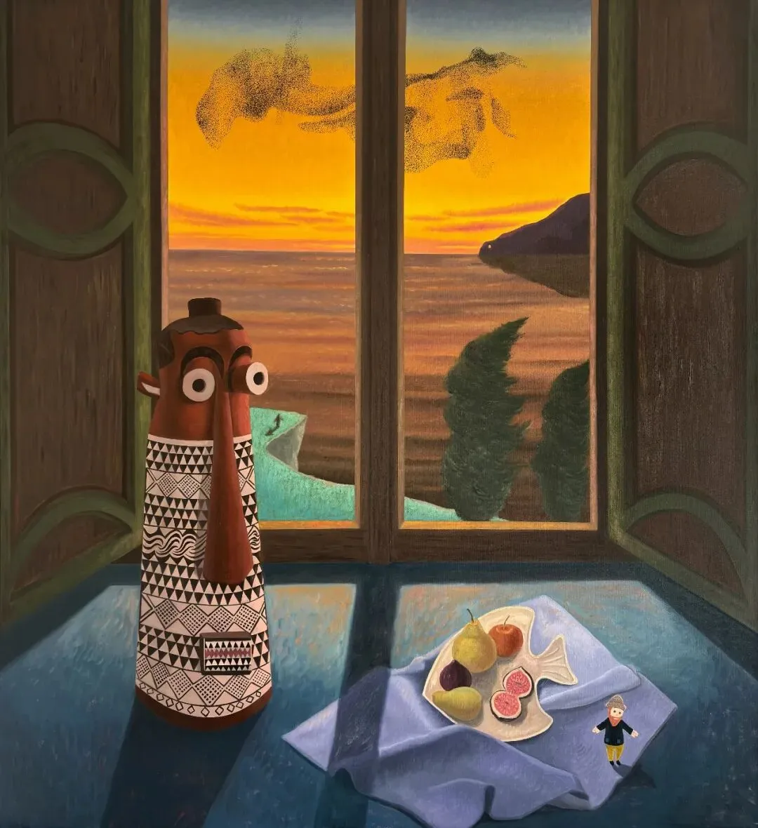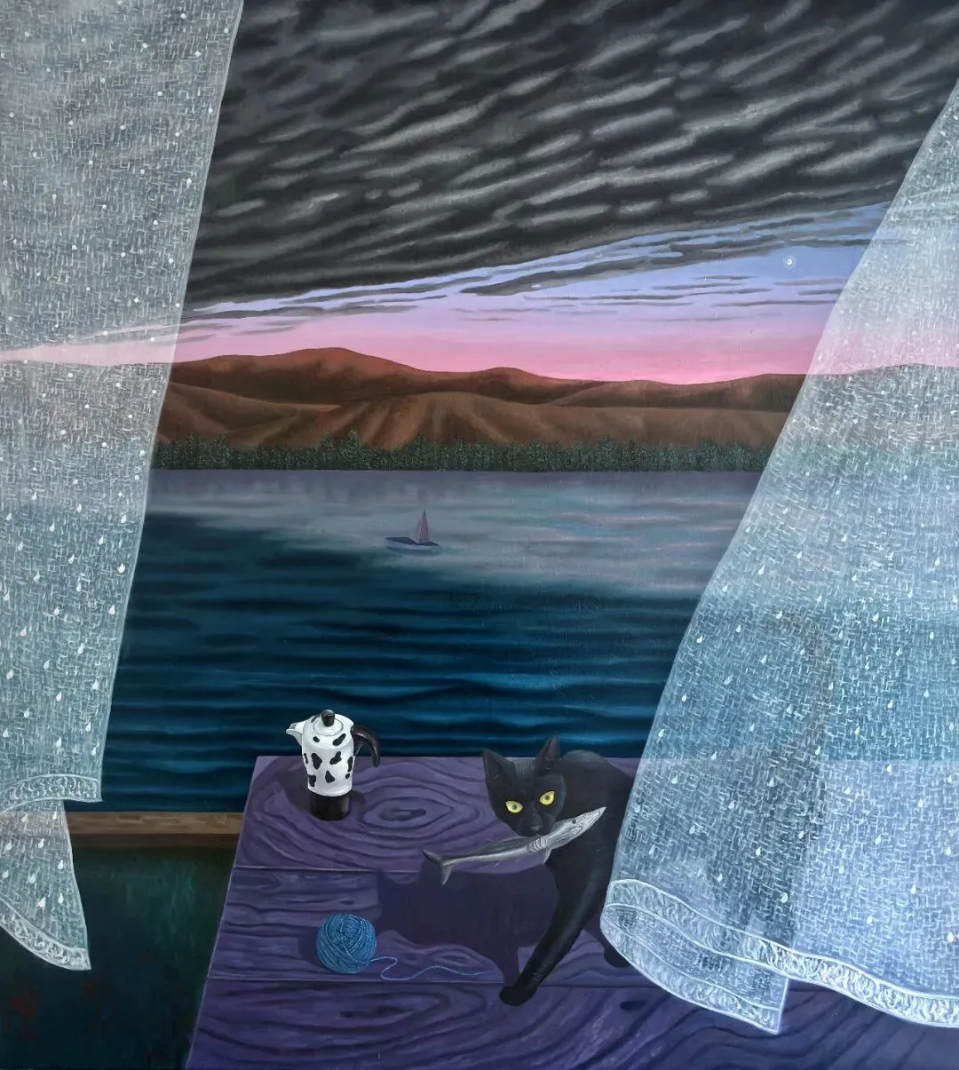 在孔慧东的创作中,“未至之地”是一种持续向外延展的空间意象。画面中反复出现的窗外风景、远处的地平线与不可抵达的外部空间,并非单纯指向地理意义上的远方,而更像是一种心理层面的投射——关于未来,或尚未发生的可能性。在长期被工作室与自我设定的秩序所包围的状态中,这些远方成为向外呼吸的出口,也构成了画面中最为关键的张力来源。(节选)