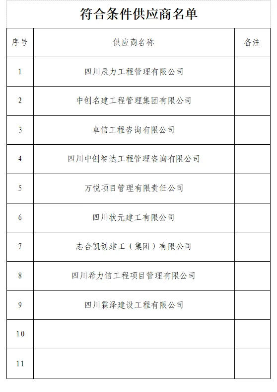 附件:符合条件供应商名单