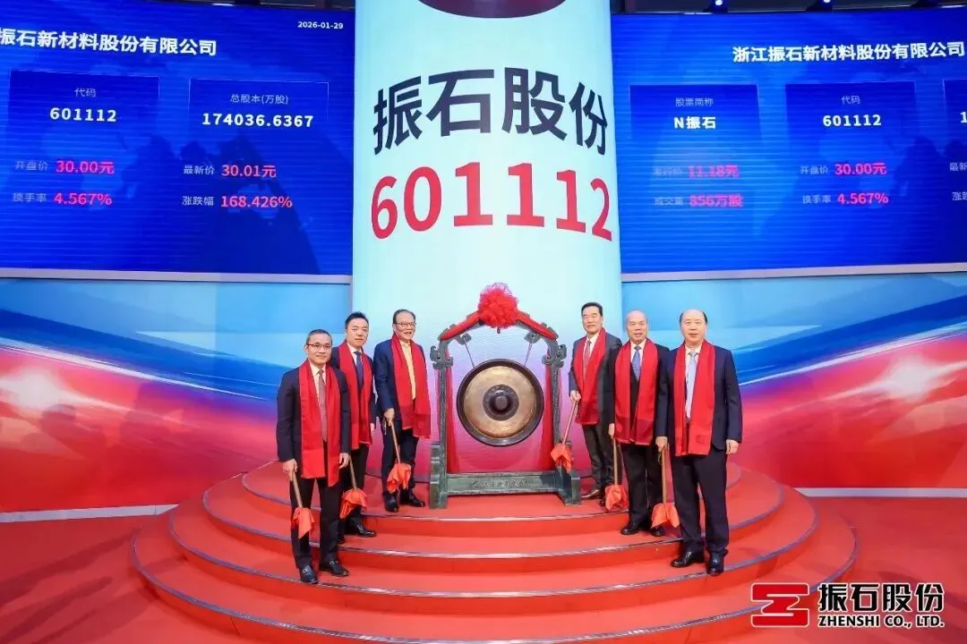 今天上午9时30分许,随着上海证券交易所上市大厅内一声响亮而庄严的锣鸣,优秀新生代企业家企业——浙江振石新材料股份有限公司正式登陆沪市主板,股票代码为“601112”,成为沪深主板2026年浙江首家新增A股上市公司。