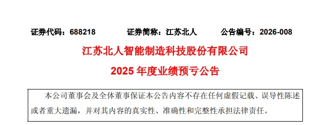 1月28日,特斯拉核心供应商之一、科创板上市公司江苏北人发布2025年度业绩预亏公告,预计全年归属于母公司所有者的净利润为亏损7813.74万元左右,同比由盈转亏。