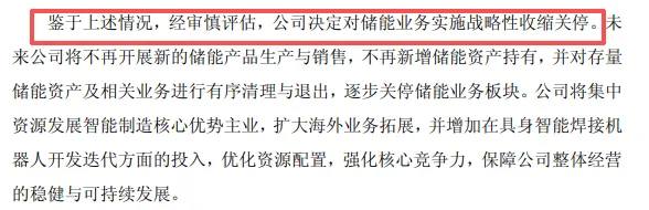 公司同时宣布,将对储能业务实施战略性收缩关停。未来将不再开展新的储能产品生产与销售,不再新增储能资产持有,并对存量储能资产及相关业务进行有序清理与退出。
