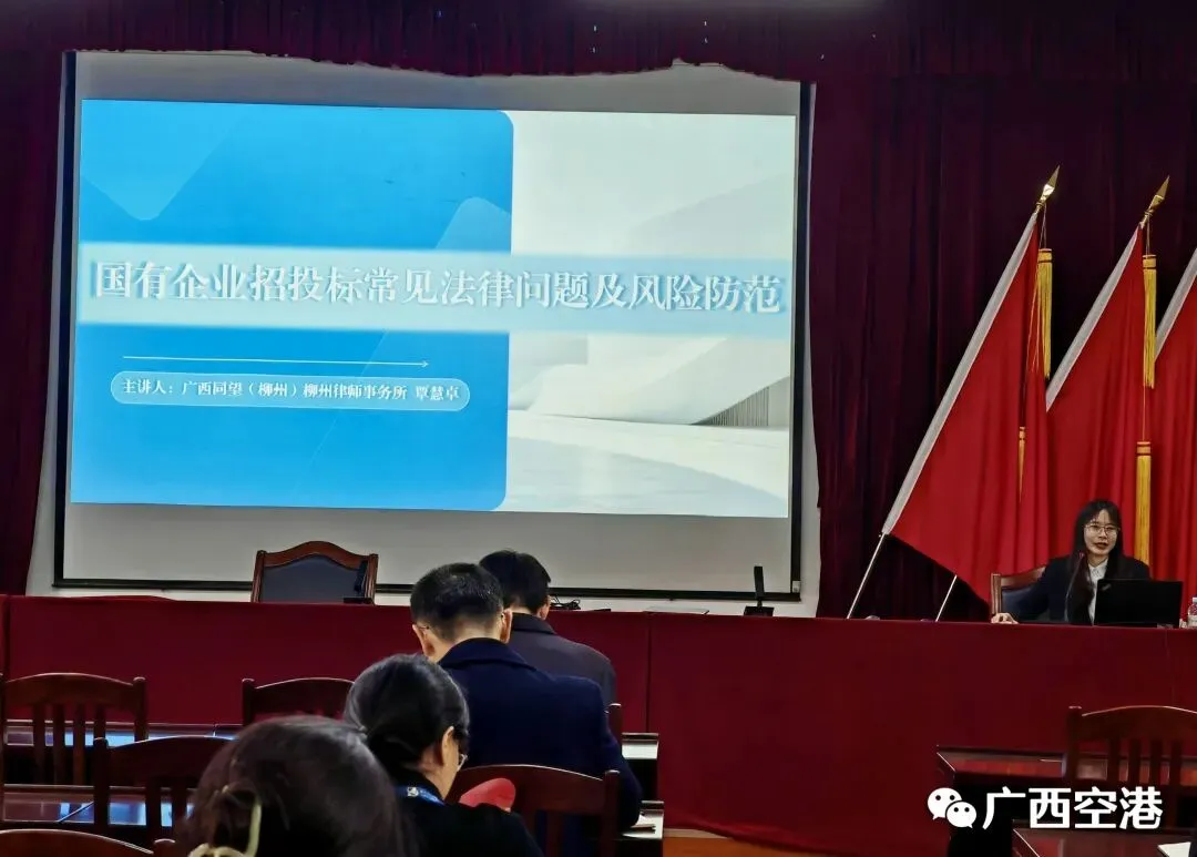 2026年1月27日,柳州机场特邀广西同望(柳州)律师事务所的覃慧卓律师开展国有企业招投标常见法律问题及风险防范的专题培训。