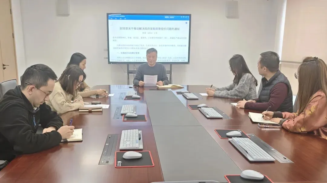 1月27日下午,区政府采购中心开展 《关于推动解决政府采购异常低价问题的通知》(以下简称《通知》)专题学习会。《通知》聚焦政府采购领域“内卷式”低价竞争突出问题,着力推动政府采购从“低价导向”向“优质优价”转变,对规范政府采购市场秩序、优化营商环境、防范采购风险具有重要指导意义。会议由区政府采购中心负责人杨益民主持,中心全体干部职工参加。