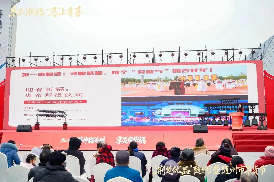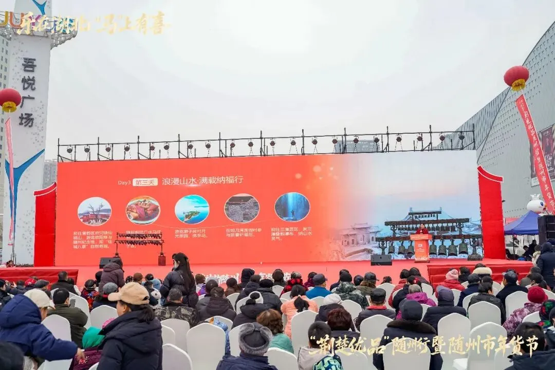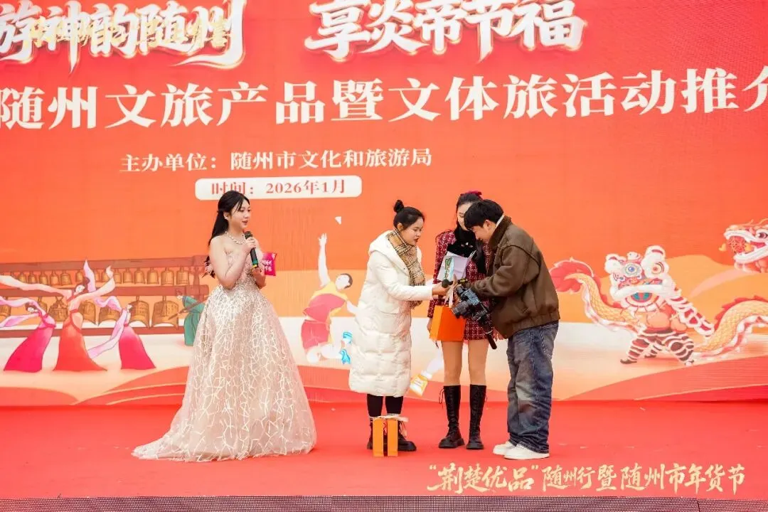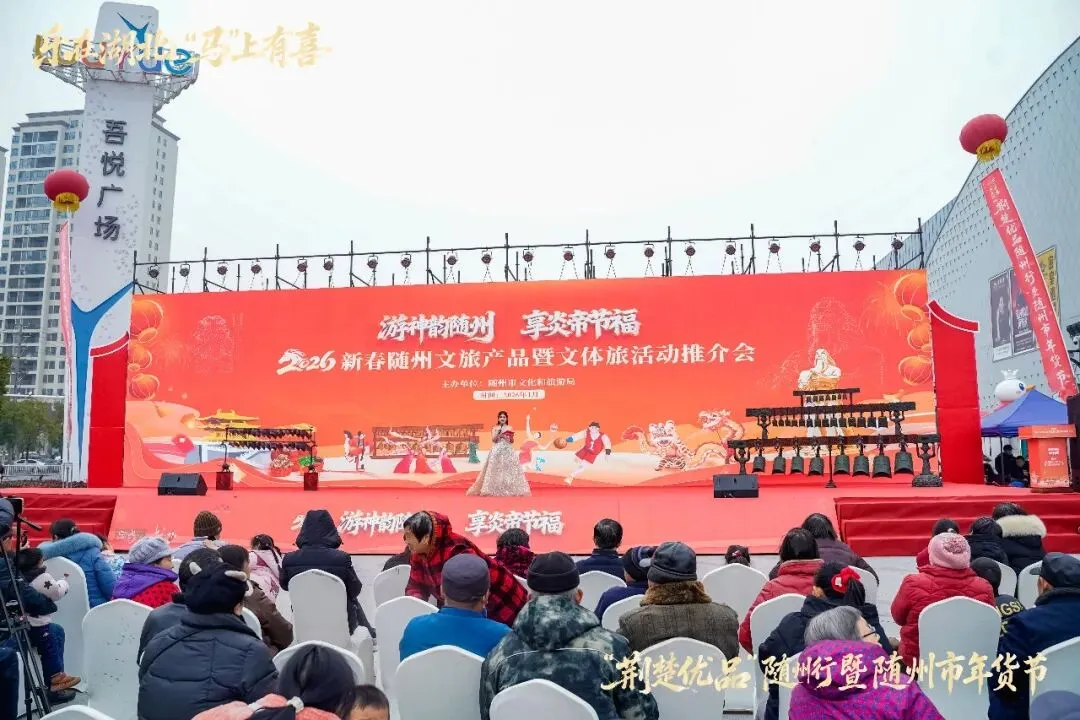 千年文明浸润,新春活力绽放。1月28日,“游神韵随州 享炎帝节福”2026年新春随州文旅产品暨文体旅活动推介会在随州市吾悦广场热力启幕。活动集中展示“神韵随州、寻根随县、古韵曾都、浪漫广水”文旅品牌矩阵新形象,为新春文旅消费市场注入强劲活力,吸引众多市民与游客共赴这场文化与山水交融的新春盛宴。