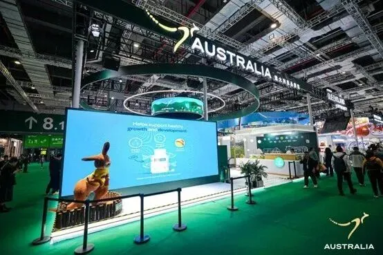 2025年第八届中国国际进口博览会于2025年11月5日至10日,在上海国家会展中心举办。面积超过1000平方米的澳大利亚品牌馆人气十足,有180多家澳大利亚企业参加,集中展示澳大利亚在包装食品、酒水饮料、乳制品、肉类、海产品、保健品与消费品等领的高品质产品。