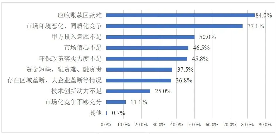 广东环保产业协会抽查的会员单位反馈环保产业当前发展面临的主要问题。图源2023年上半年广东省环保产业运行形势分析简报那么,造成企业应收账款规模增加、回款时间延长的主要原因是什么?政府财政资金紧张,支付乏力;企业收益下降,周转困难;项目进度延后;验收周期长等。环保业务营收连续多年全国排名靠前的广东省尚且如此,其他省份也不容乐观。安徽省生态环保产业协会相关人员告诉记者:“安徽省环境保护产业协会上半年开展了全省生态环保产业运行形势分析调查。参与调查的企业应收账款总体增加。从调查结果来看,上半年有56.2%的企业应收账款同比增加,25.0%的企业应收账款基本持平,18.8%的企业应收账款同比减少。造成企业应收账款规模增加,回款时间延长的原因主要来自企业施工周期长回款慢,甲方货款、工程建设费用、运营费用结算期长,政府部门付款延迟、政府方拖欠工程建设费用、运营费用、货款等。”暨南大学会计学系教授、博士生导师沈洪涛告诉本报记者:“我国A股环保类上市公司母公司层面,2022年应收账款占营收均值是95%(极端值较大),中位数是60%;2021年均值是56%,中位数是46%;2020年均值是55%,中位数是45%。A股全部上市公司母公司层面,2022年应收账款占营收均值是68%,中位数是26%;2021年均值是61%,中位数是25%;2020年均值是136%(有几家公司母公司的营业总收入很小),中位数25%。均值容易受到极端值影响,如果有几家公司的值异常高,就会拉高整体均值。如果要看均值,最好把极端值去掉以后再算均值。所以,中位数更可靠一些。前面两组数据,第一组是A股环保类公司的,第二组是A股全部上市公司的,比较可以看出,环保行业应收账款占营收的比例确实比较高。”E20环境平台高级合伙人、E20研究院执行院长、北京大学环境学院E20联合研究院副院长薛涛告诉本报记者:“客观来说,今年环保企业应收账款的情况非常严峻,总体看,比去年严重。受疫情影响,去年很多企业都面临政府拖欠的问题,因为很多地方政府确实财政紧张。这里应该注意一个问题,对不同的商业模式而言,如国企和民企、重资产企业和轻资产企业,其应收账款问题的评价标准是不同的。比如,对于BOT公司,可以更多地关注其应收账款的账期有什么变化,比如原来是两个月,现在变为半年了,则说明其这方面问题在恶化。对于装备制造公司,可以关注其应收账款占营收的比例。国家会通过多种措施帮助民企解困纾难,但如果不解决地方政府的税源问题和收入问题,就很难从根本上缓解环保企业的应收账款问题。但这不只是环保行业面临的困境,依赖政府付费项目的企业都可能面临这样的问题。”安徽省生态环保产业协会相关人员告诉记者:“协会对2023年上半年省内环保产业运行形势的调查结果显示,80%以上的企业反应应收账款比重大、回款时间长、回款难等问题。一方面,疫情三年带来经济下行的情况,不少地方政府迫于财政压力,暂缓或延迟部分规划中的环保基础设施建设,环保新项目释放减少。另一方面,工业企业产能减少,导致环保需求减少,爆发的业界最突出的‘老、大、难’问题就是‘应收账款’问题。应收账款拖欠在整个产业链条上传递,上游欠下游、总包欠分包。而应收账款背后是支付模式的问题。这些企业的资金要么依赖自有资金,要么依赖政府的财政能力,一旦遇到经济形势不好、地方财政吃紧的情况,企业现金流就会受到重大影响。这种问题对中小微企业而言尤其明显。”此外,融资难、融资贵问题、负债情况均未见明显改善。广东环保产业协会对会员单位的抽查结果显示,叠加回款难因素,58.3%的企业上半年现金流情况变差。在经营承压明显、资金链紧张的情况下,38.2%的企业表示再扩产投资的意愿减弱。在这种背景下,一些企业为求生存,不惜“以低价换市场”。更有少数企业为降低成本,在原材料、零部件的选用上以次充好。专家告诉记者,这种选择会加剧环保市场环境恶化,让同质化竞争现象更为突出。为谋求短期利益而不惜伤害整个行业长期的良性发展是不可取的。那么,民营企业应该如何在逆境中求生存?薛涛告诉记者:“压缩规模、提高质量、加强技术创新,我认为这三点是最重要的。”安徽省环保产业协会认为,安徽企业需要重视加强应收账款管控、积极拓宽融资渠道、建立多元型资金归集模式、优化资金预算配置方案,进一步提升资金使用效率。同时,建议锚定一些重点方向,有的放矢。这些方向包括县域环境基础设施补短板、向“新环保”系统服务商转型、《重点流域水生态环境保护规划》释放重大机遇、新污染物治理增量市场下沉到县一级等。本期编辑:汪茵