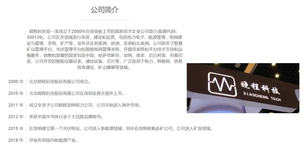 总的来看,晓程科技从一家专业的芯片设计公司起步,通过上市融资,继而拓展海外电力项目,并逐步进入矿产和新能源领域,形成了当前的业务布局。