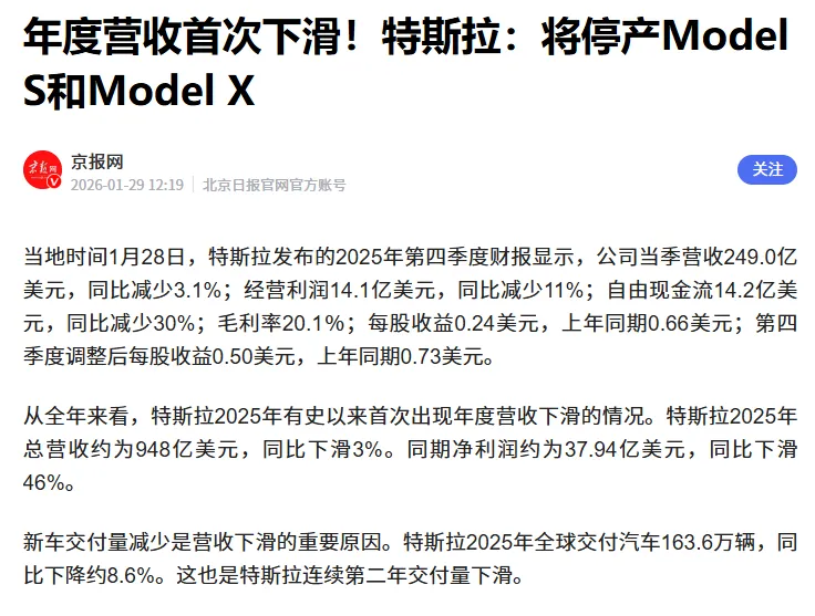 5. 汽车之家:2026年1月29日《特斯拉Model S和Model X确认年内停产!》;