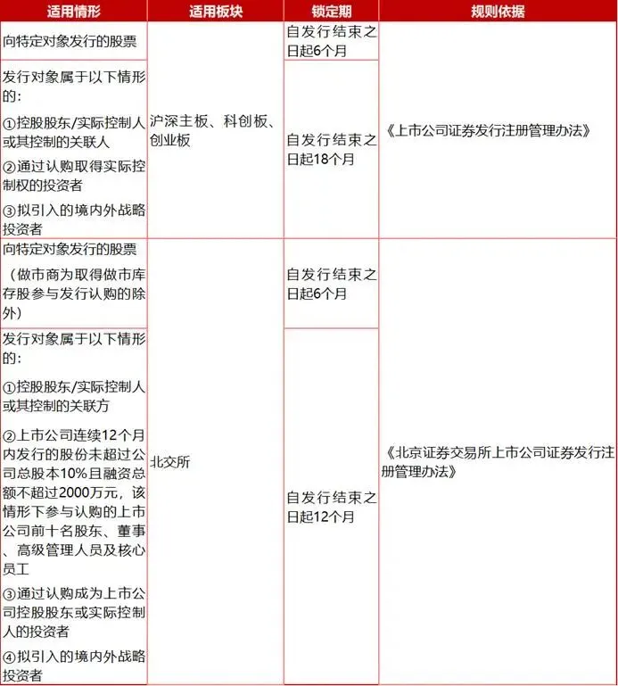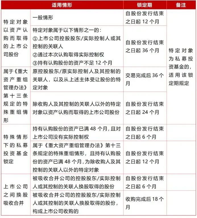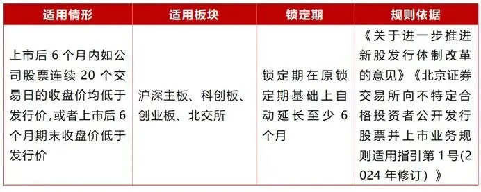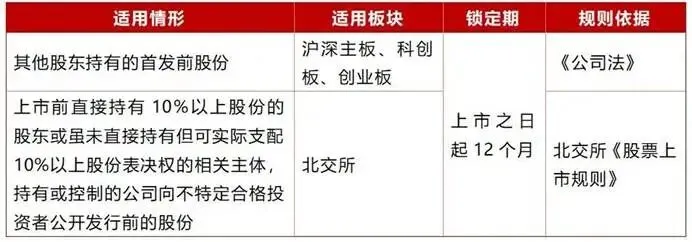 对于不属于控股股东、实际控制人或其一致行动人、亲属的其他股东,锁定期的原则性规定如下表所示。若该股东还兼具董事、高级管理人员、核心技术人员、突击入股等其他特殊情形,则以下一般性锁定期应与其他锁定期结合适用,并遵循孰长原则执行。