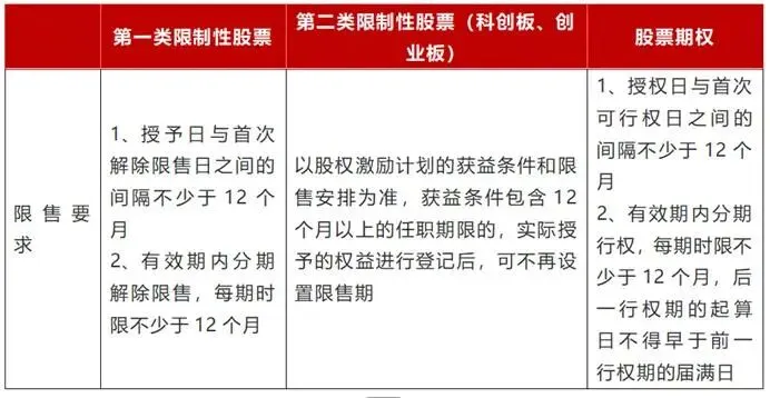 股权激励主要包括限制性股票和股票期权。对应的限售要求归纳如下: