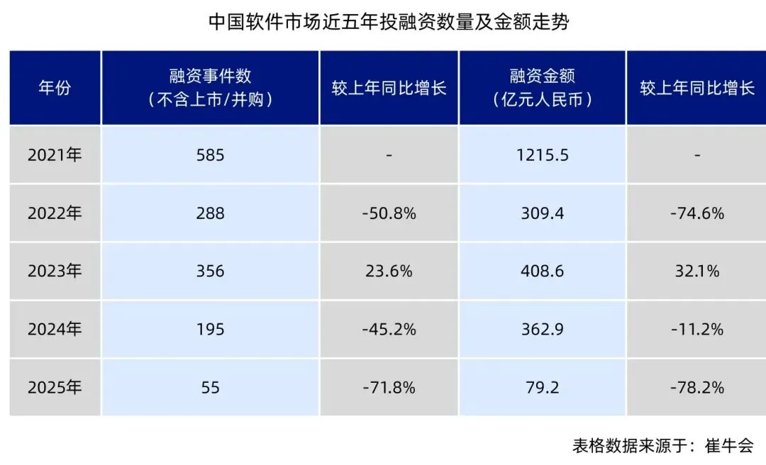 那些曾经拿着漂亮 BP、喊着“中国版 Salesforce”口号的独角兽们,在烧完几轮融资后,悄悄把 SaaS 订阅改回了项目外包。投资人也不再买账,企业软件赛道的融资事件断崖式下跌,资本用脚投票:这个生意,不行。