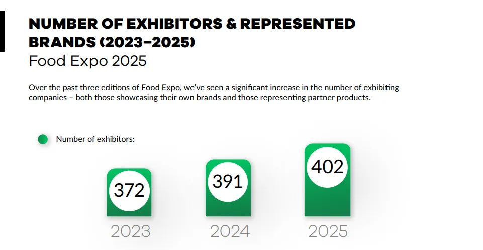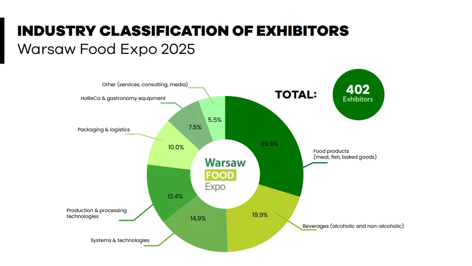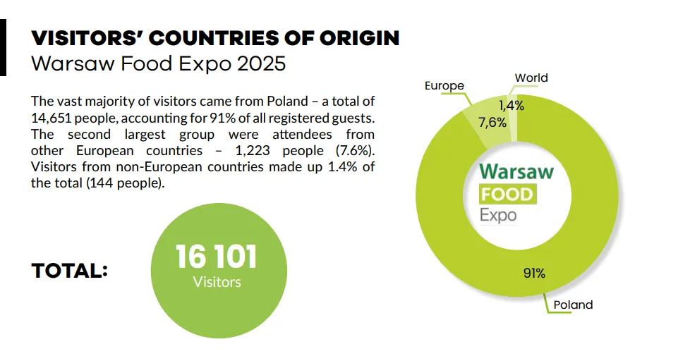 2025年展会于5月20日至22日在波兰华沙PTAK国际展览中心举行,展示面积达25,000㎡,吸引了来自46个国家的402家参展商,共接待16,101名专业观众,包括食品批发商、零售商、餐饮企业代表、食品进口商、经销商等。