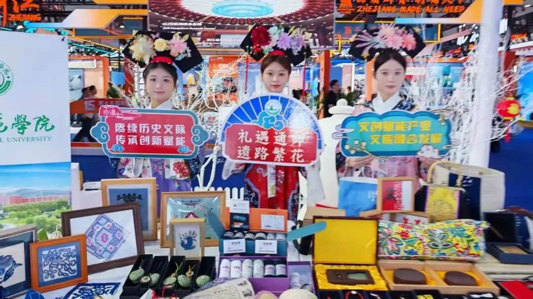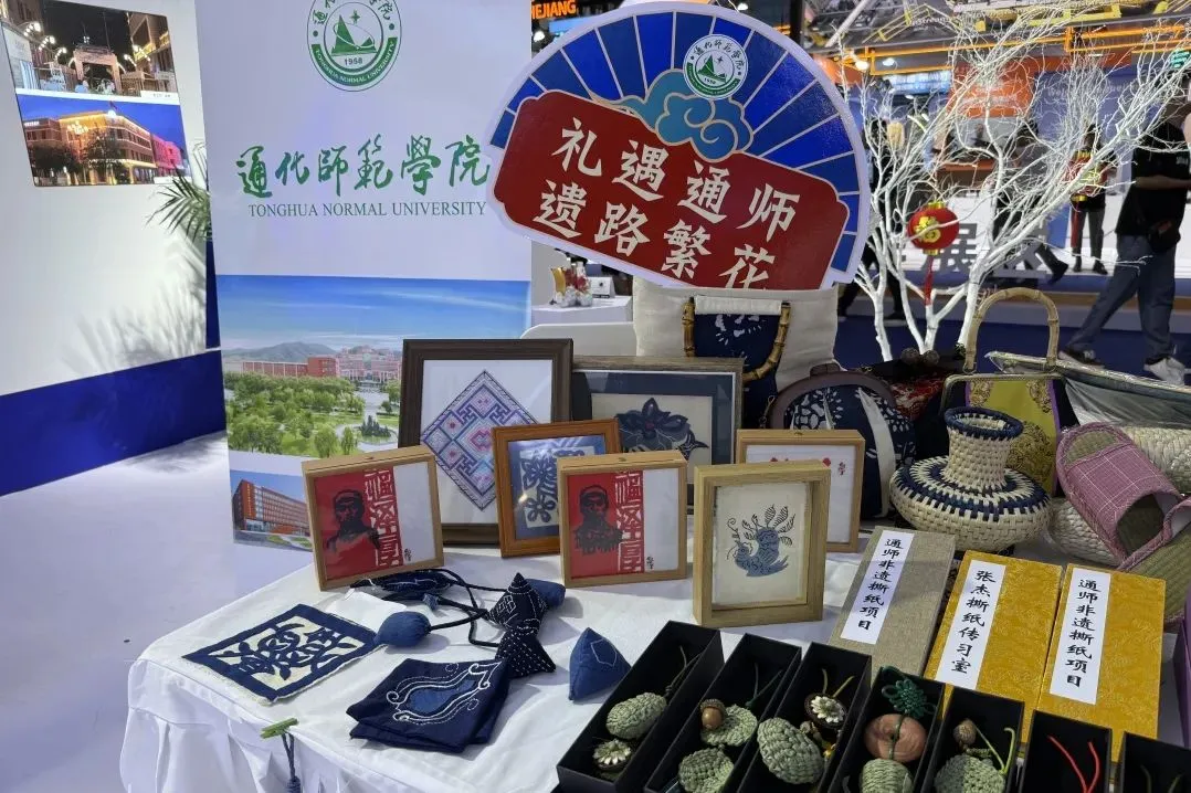 校园非遗文创亮相东北亚博览会!吉林师范大学以及通化师范学院都在“礼遇吉林”展厅进行非遗展示。
