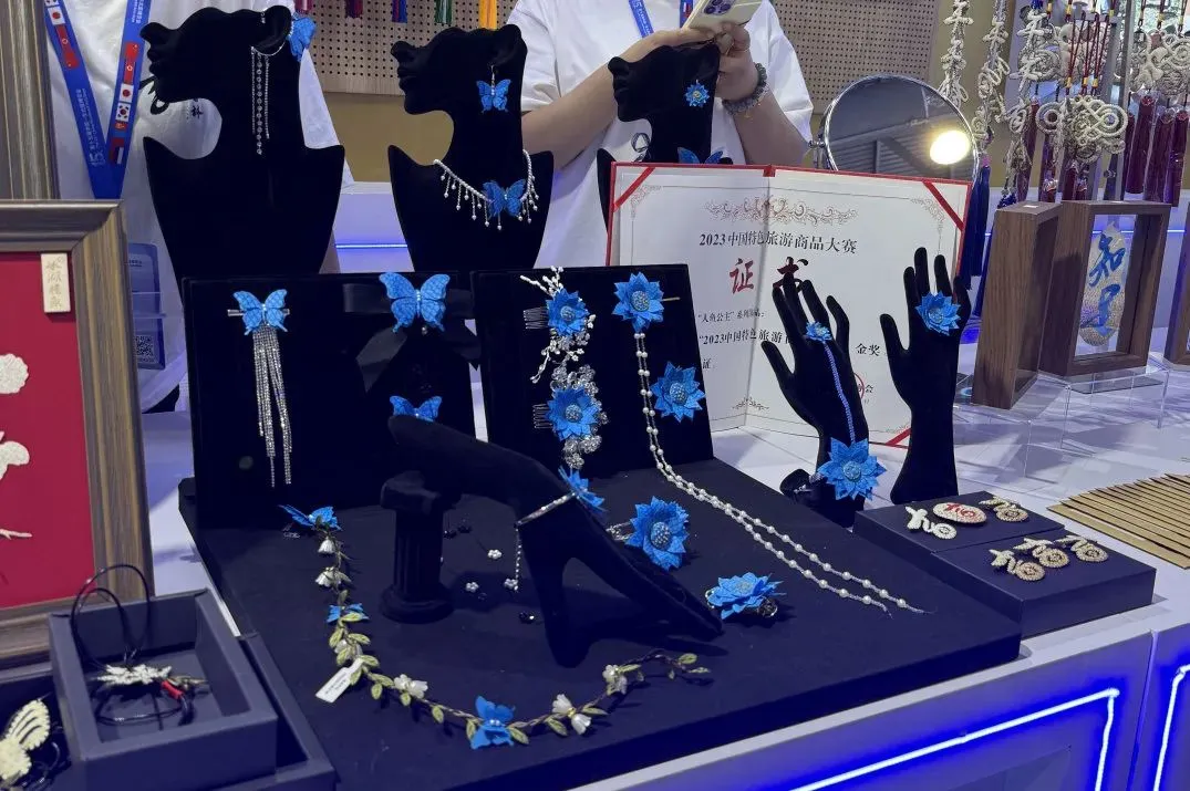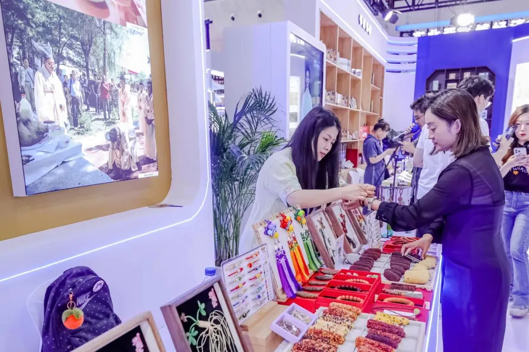 吉林省博物院、伪满皇宫博物院、吉林省图书馆等都带了精美的文创产品,吉林省博物院展出的产品主要有许湘花鸟系列包品、高句丽壁画系列饰品等8个品类;吉林省图书馆全新推出的《永乐南藏》系列文创产品,产品类型涵盖冰箱贴、口袋本、笔记本、变色马克杯、笔袋、印章、《明永乐南藏本玄奘法师传》影印本等20余种……充分展示了吉林省文化和旅游的特色风情与古老历史文化。