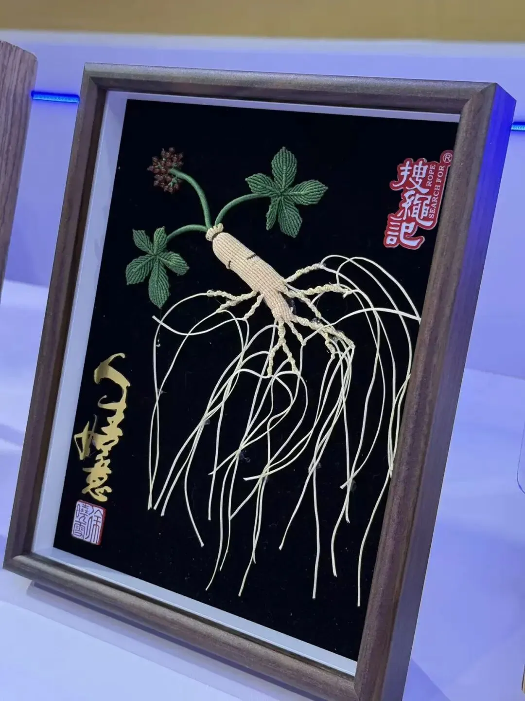 绳编展区则为大家展示了多种多样的带有吉林元素的精美作品,既有文玩小玉米,还有吉林特产人参……吉林绳编采用多色丝线编织,色彩丰富,且编织用的绳子逐渐变细,编织出来的装饰品也逐渐向精致小巧靠拢,再搭配上珠宝玉石设计,显得既精巧又有质感,再结合吉林特色元素,展示出了吉林文化的独特韵味。